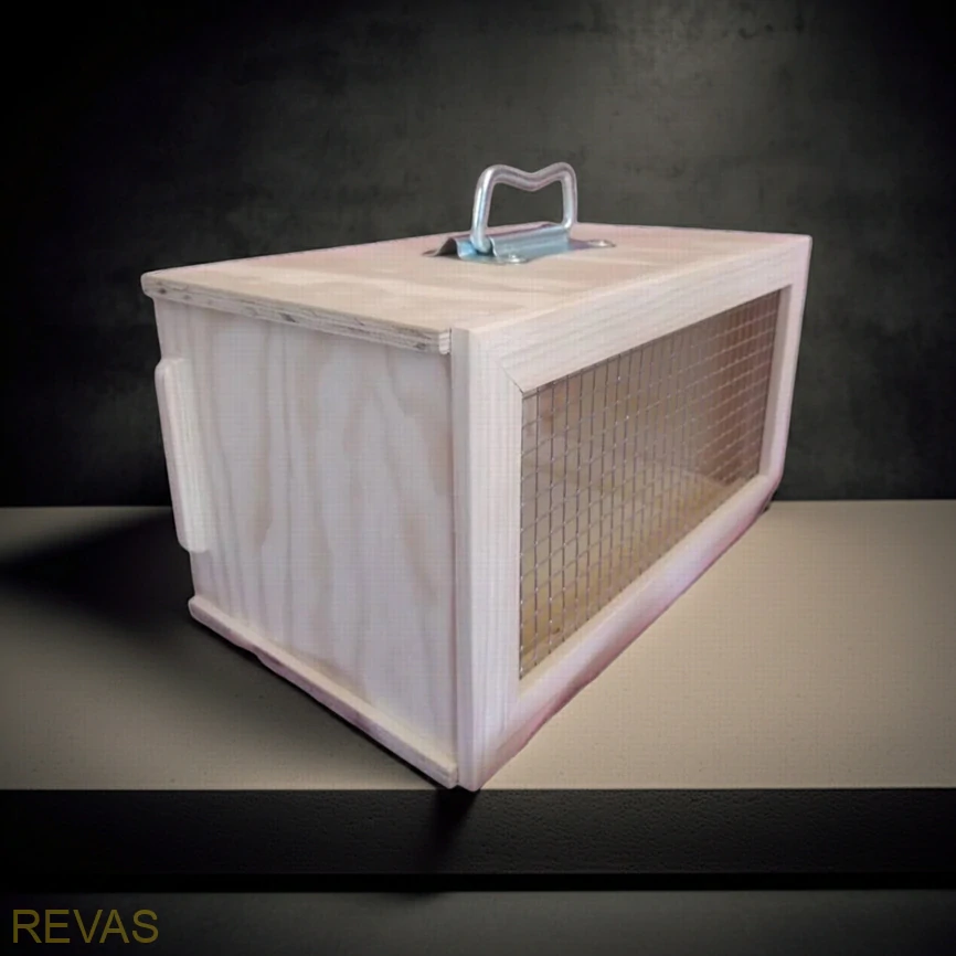 Dřevěná jednopřepravka je navržená pro pohodlný a bezpečný převoz jednoho mazlíčka. Díky kompaktním rozměrům se snadno přenáší a je ideální pro běžné situace, kdy potřebujete mít svého mazlíčka pod kontrolou.