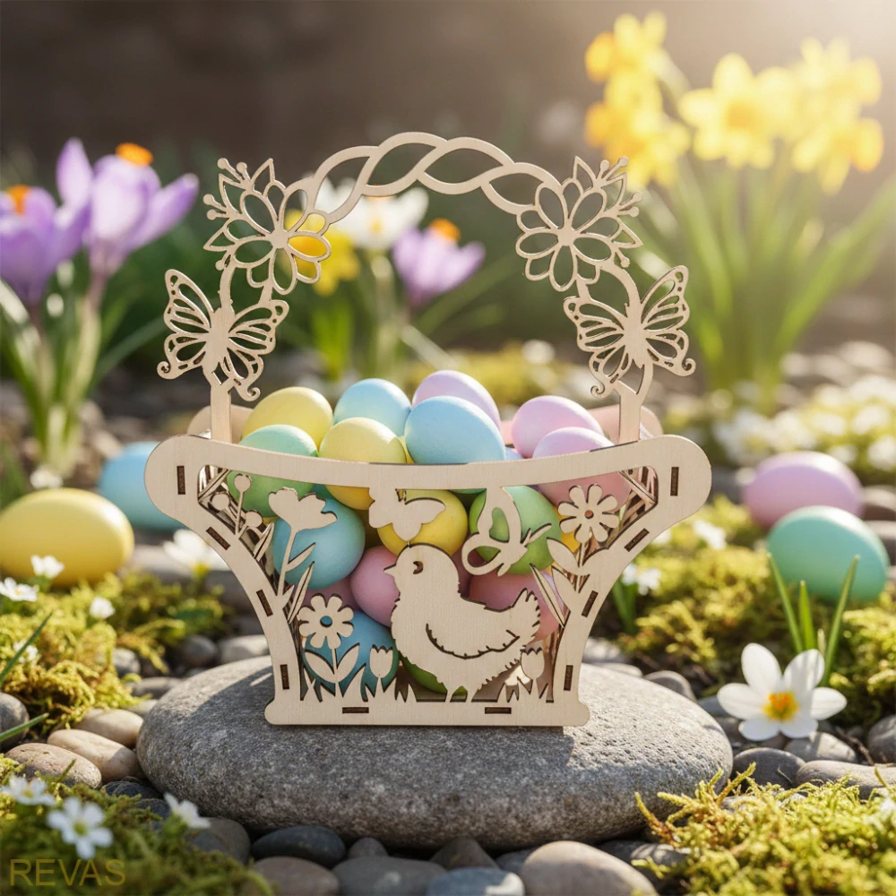 Košíček je vyroben z kvalitního dřeva a je ideální pro vystavení kraslic, čokoládových vajíček nebo drobných dobrot. Skvěle poslouží jako dekoracena velikonoční stůl i jako milý, originální dárek pro vaše blízké. Kombinuje tradiční motivy, přírodní materiál a poctivé zpracování — perfektní volba pro sváteční atmosféru i radost z obdarování.