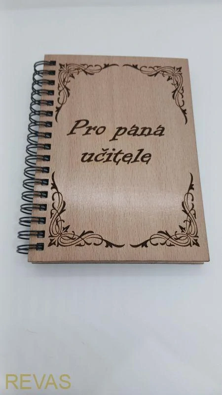 Zápisník s dřevěnými deskami a gravírováním pro pana učitele
