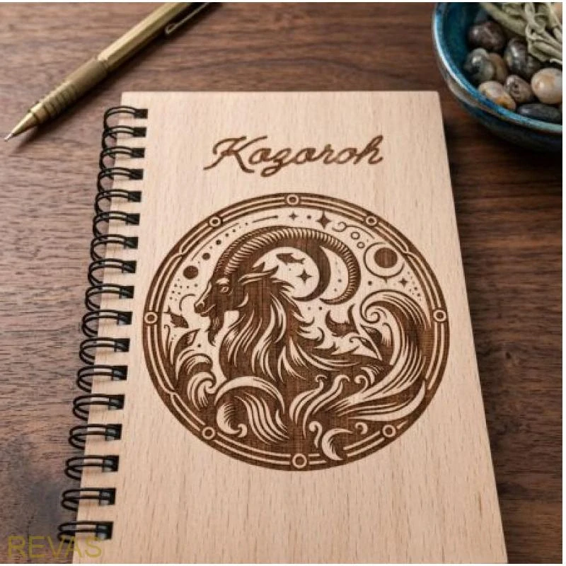 Znamení Býka ocení kvalitu, stabilitu a krásu. Dřevěný zápisník s gravírováním Býka je elegantní a praktický dárek pro milovníky klidu a harmonie.