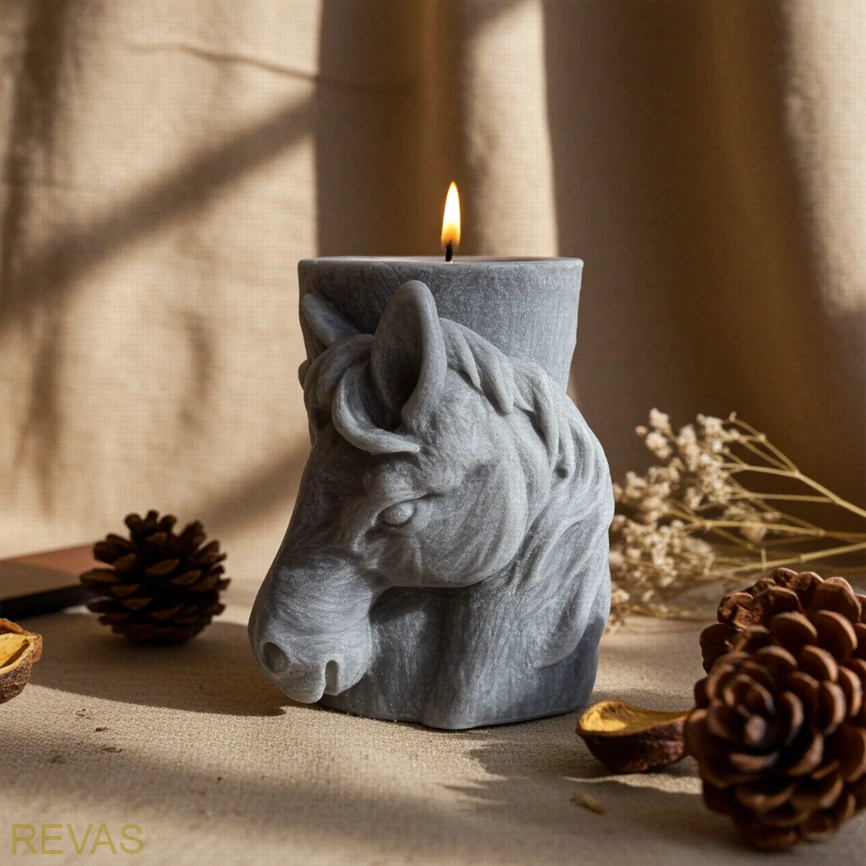 Originální ručně vyrobená svíčka s reliéfem KONĚ. Třpyt a kresba Palmového vosku podtrhne krásu této svíčky, jedinečný dárek nejen pro milovníky koní. Krásná dekorace.