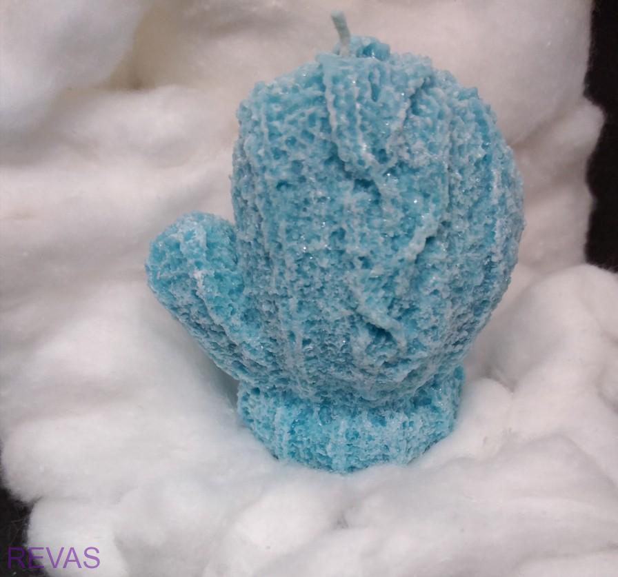 - Svíčka z palmového vosku – pletená rukavice | Ručně vyrobená vánoční dekorace