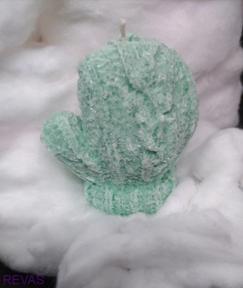 - Svíčka z palmového vosku – pletená rukavice | Ručně vyrobená vánoční dekorace