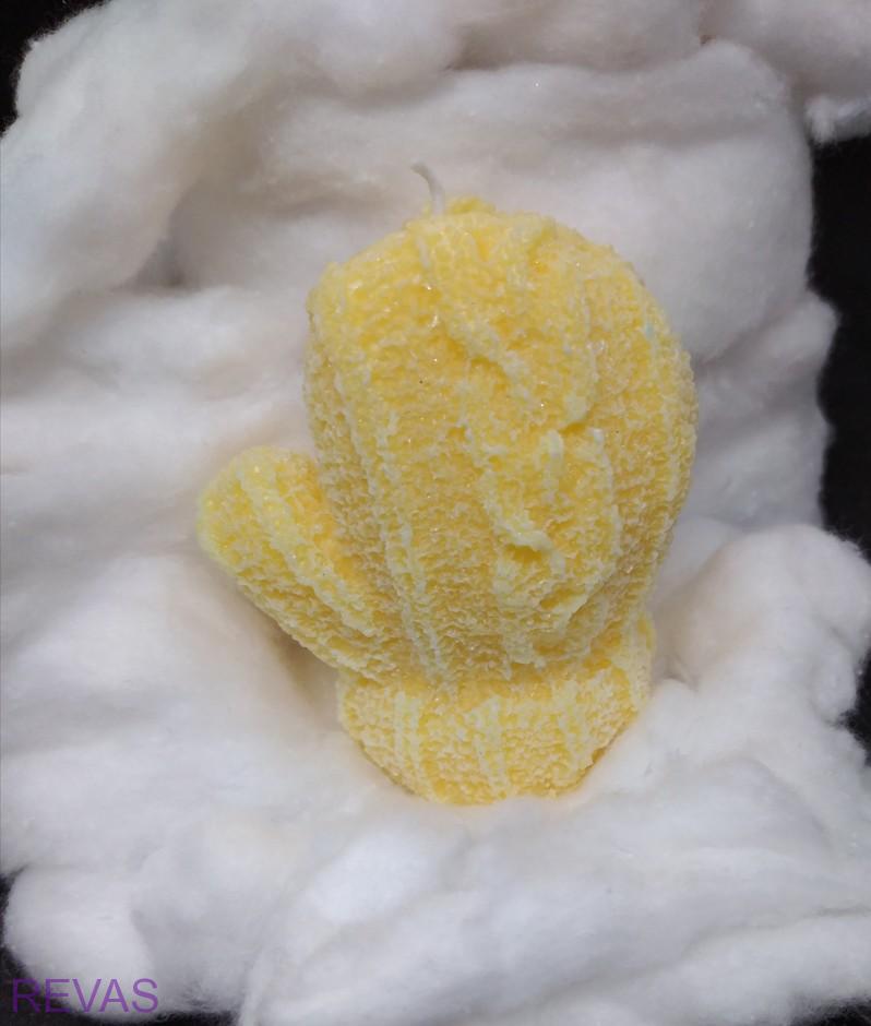 Ručně vyrobená svíčka z palmového vosku ve tvaru pletené rukavice. Originální zimní dekorace i krásný vánoční dárek. Bez vůně. celý popis