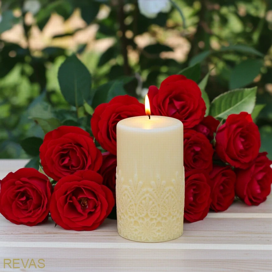 Svíčka válec s krajkou je elegantní ručně vyráběná dekorace z palmového vosku, která zaujme svým jemným vzorem připomínajícím krajku. Díky svému vzhledu působí velmi vkusně a hodí se do moderního i klasického interiéru.