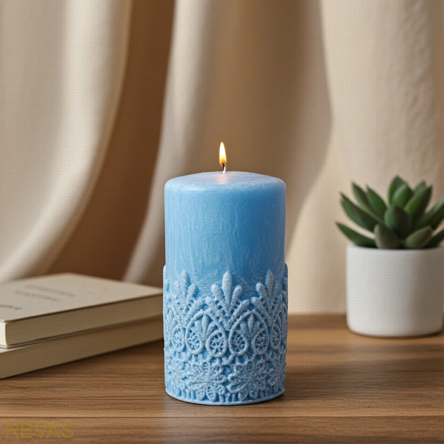 Svíčka válec s krajkou je elegantní ručně vyráběná dekorace z palmového vosku, která zaujme svým jemným vzorem připomínajícím krajku. Díky svému vzhledu působí velmi vkusně a hodí se do moderního i klasického interiéru.