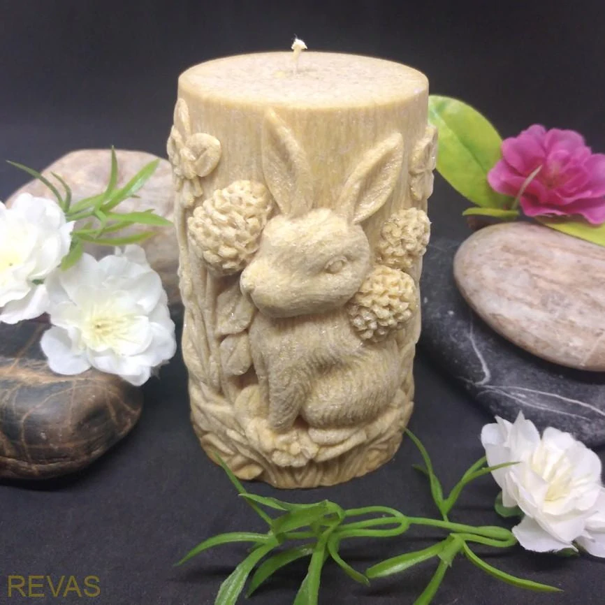 Nechte se okouzlit kombinací tradičních motivů a moderního designu. Na našem eshopu si ještě dnes vyberte svíčku z palmového vosku s reliéfem zajíce a květin, které promění každý den v malý svátek krásy a originality!