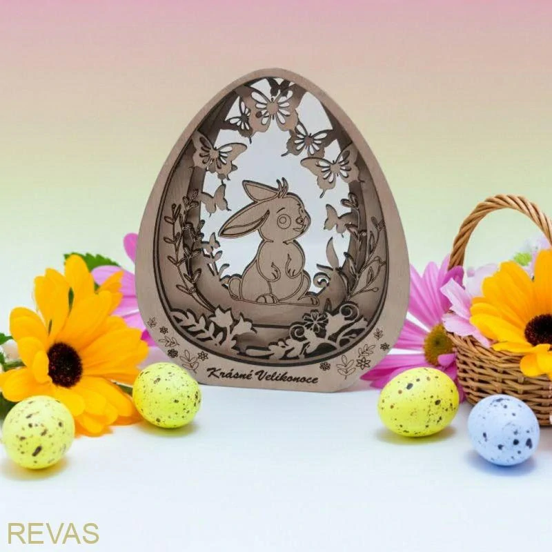Tato 3D velikonoční dekorace kombinuje tradiční motivy s kreativní zábavou. Vajíčko se zajíčkem a květinami je vyrobeno gravírováním z kvalitní bukové překližky. Děti mohou dekoraci samy dozdobit barvičkami a vytvořit tak originální velikonoční dekoraci. Rozměry 15 cm (výška) × 12,5 cm (šířka) × 2 cm (hloubka) umožňují snadné vystavení na poličce, okně nebo jako součást velikonočního stolování.